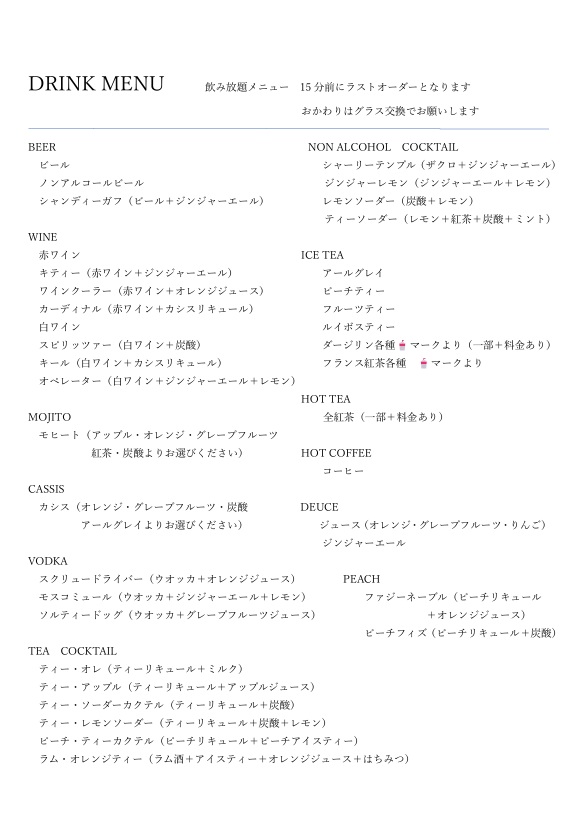 ○2時間のご利用(オプションにて延長可能)ですが終了後30分はご歓談いただいて大丈夫でございます