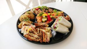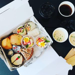 (グリルチキン焼き野菜付、キャロットラぺ、ピクルス、スコーンサンド、グリルドサンドハーフ、キッシュ)