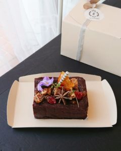 カカオ分70%。エクアドル産のカカオを主体に、香料不使用、力強く華麗な花の香り、限りなくピュアなアロマが特徴なチョコレートを使用し食べごたえのある濃厚なテリーヌです。ドライフルーツでデコレーション★
