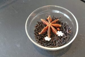 深々と雪の降り積る夜。暖炉の火を囲んで静かに味わうような、北国のクリスマスをイメージした紅茶です。スリランカの紅茶をベースに、林檎、オレンジ、アーモンドスライス、シナモン、ジンジャー、星形のスターアニス、白い雪の結晶が、クリスマスツリーのように賑やかに入っています。